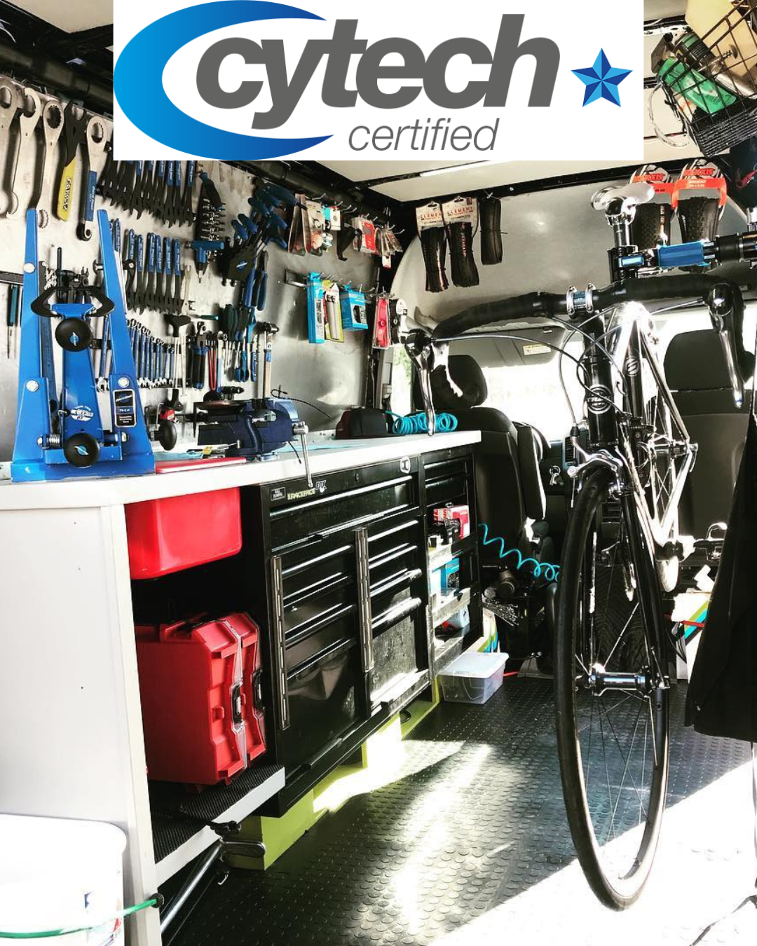 - CUSTOM RACKS IN THE VAN MEAN NO PACKAGING OR BIKE BOX NEEDED!